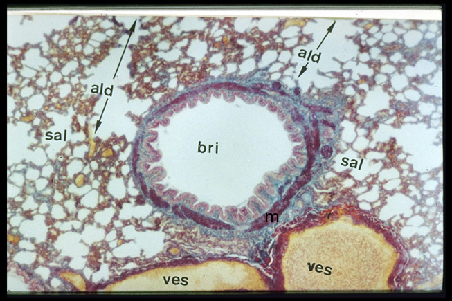 | A | เป็นท่อนำอากาศที่มีขนาดตั้งแต่ 1 มม.ลงมาและไปเลี้ยง pulmonary lobules |