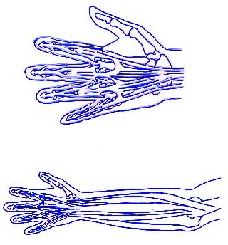 Extends fingers (MPJ, IPJ) and hand (WJ)