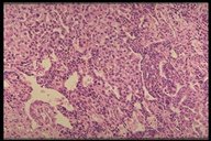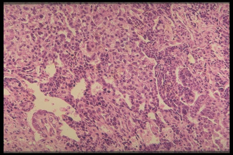 Sacrococcygeal teratoma showing mixed tissue including hair