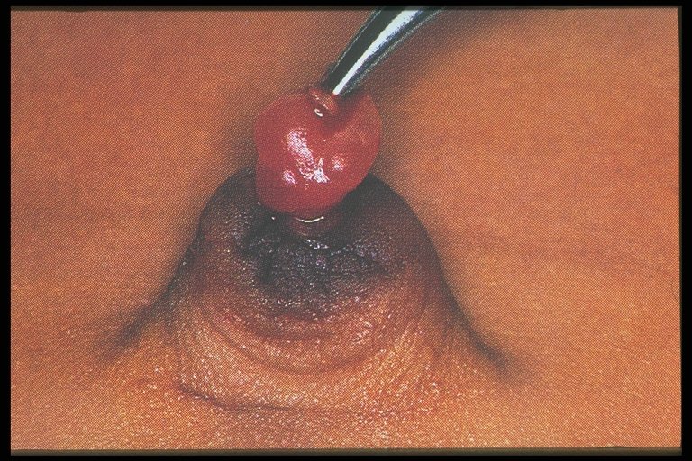 Umbilical polyp, overgrowth of the granulated tissue with narrow base