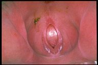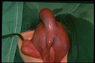 Hypospadias, transposition of penis and scrotum, with micropenis, lateral view