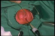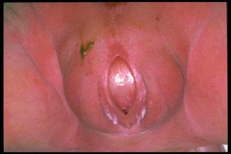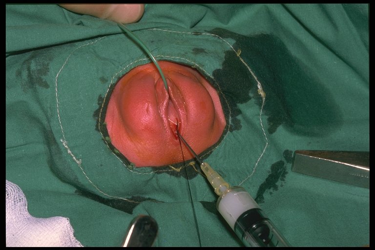 Neonatal hydrometrocolpos, the whitish mucous is aspirated