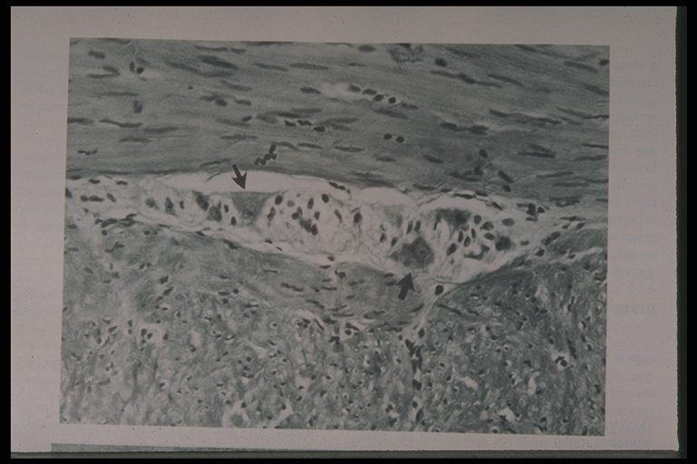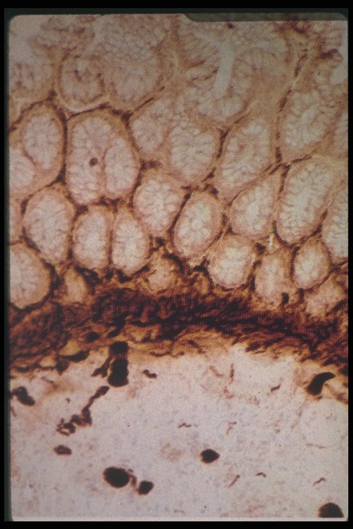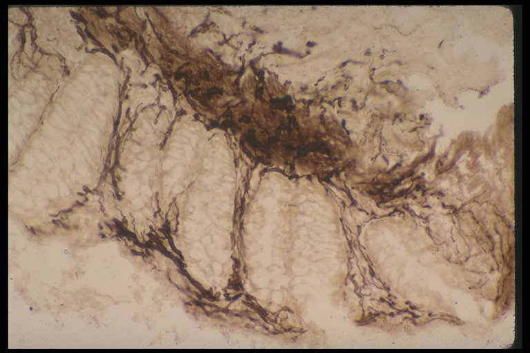 Ganglion cells (arrow) are demonstrated in normal bowel segment