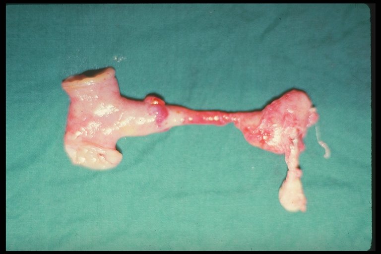 A resected specimen consisted of Meckel's diverticulum, omphalomesenteric band and some part of umbilicus