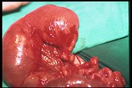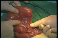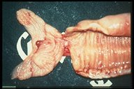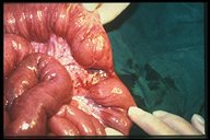 Ileal stenosis. A small short segment of stenotic ileum is observed