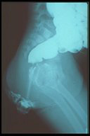Rectal duplication. A barium enema demonstrates hollow mass anterior and connected to the rectum (barium outlined the mass)