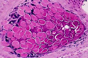 เป็นโรคติดเชื้อไวรัส (molluscum virus) (pox virus) ที่ผิวหนัง