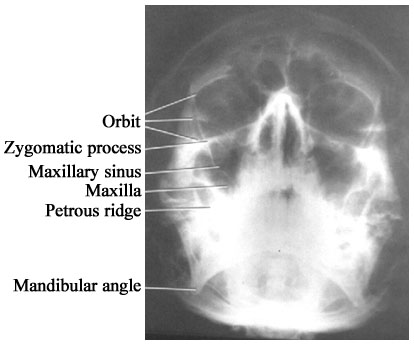รูป sk.6 Water's view เห็น orbit, maxillae, zygomatic arches ชัดเจน