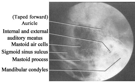 ใช้ดู mastoid process จะเห็น