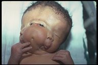 Monocephalus Diprosopus twins, nearly duplication with four eye balls, two noses and two mouths