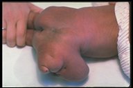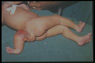 Twinning of the lower extremity, this child has 3 legs so called monocephalus tripus dibrachius